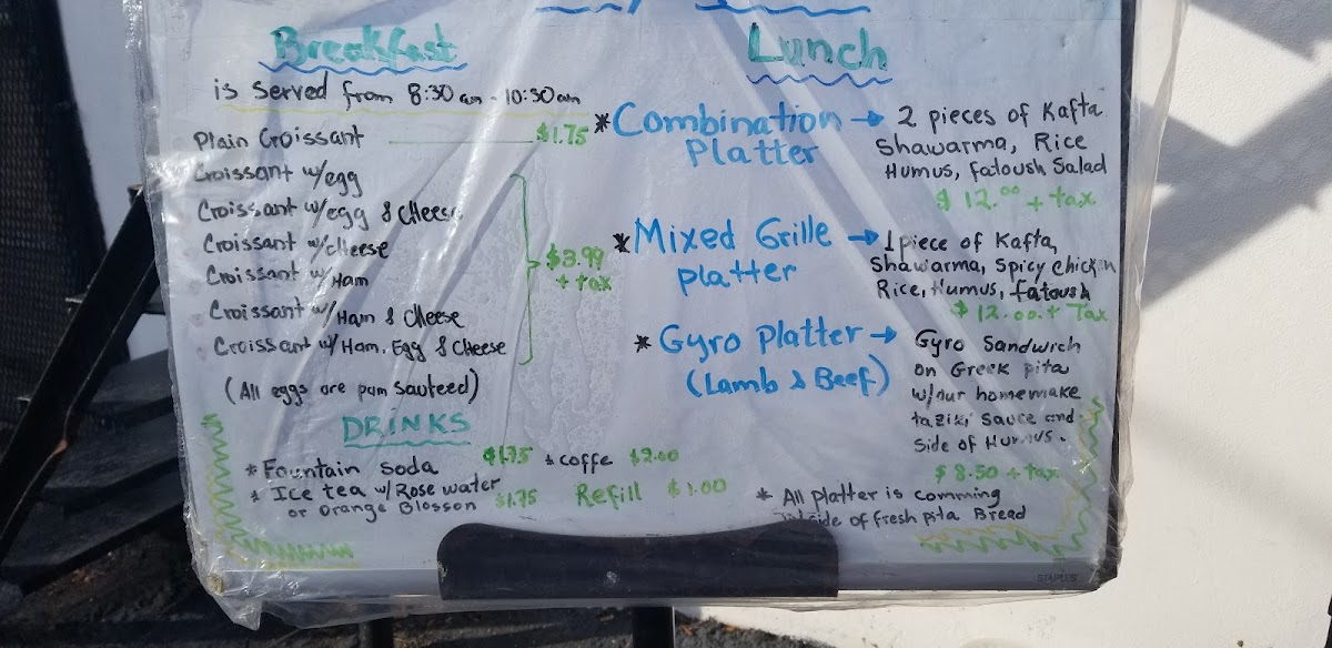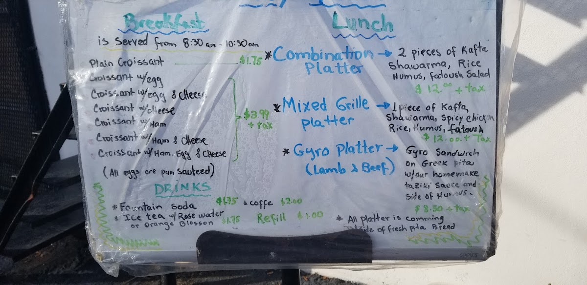 Spicy chicken kabob, sharwarma, kafta, lamb and beef, kabob, onion and garlic aioli.